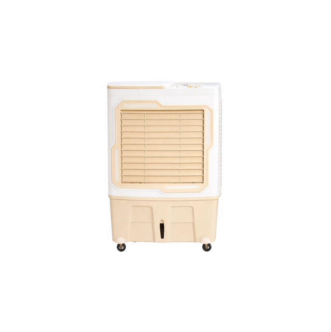 Premium Desert Air Cooler with 20-inch aerodynamic fan for extra-long air throw and fast cooling. Built with durable body, 3-side 2” thick honeycomb cooling pads, and high-efficiency copper motor. Includes large water tank, ice chamber, and gear box technology for powerful performance in large halls, shops, and outdoor areas.